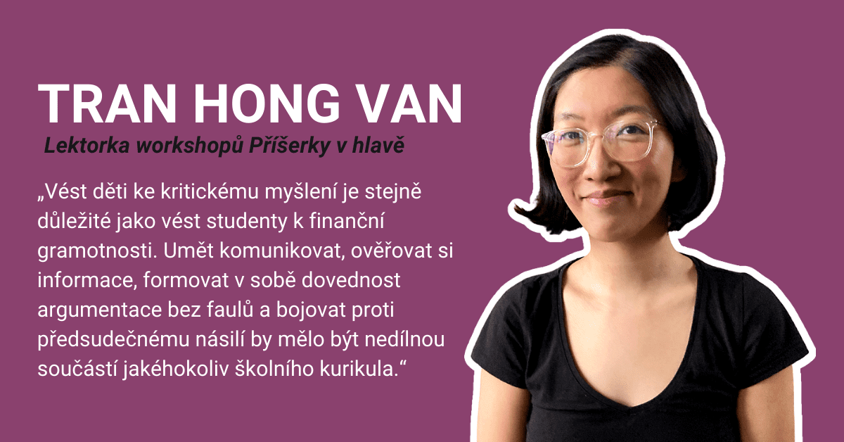 Tran Hong Van (28) je lektorka interaktivních workshopů Příšerky v hlavě, studentka ergoterapie na 1. lékařské fakultě Univerzity Karlovy a dobrovolnice (ŽIVOT 90 z.ú., Český červený kříž, Breakfaststory). Narodila se v Praze a dětství prožila na sídlišti v Letňanech. Van o sobě říká, že je typický banán, a je na ní znát, že vyrůstala v Česku, česká společnost ji formovala, mentalitu má taky spíš českou. Nejvíc je to podle Van poznat na humoru, miluje sarkasmus, což je podle ní spíš česká vlastnost.
