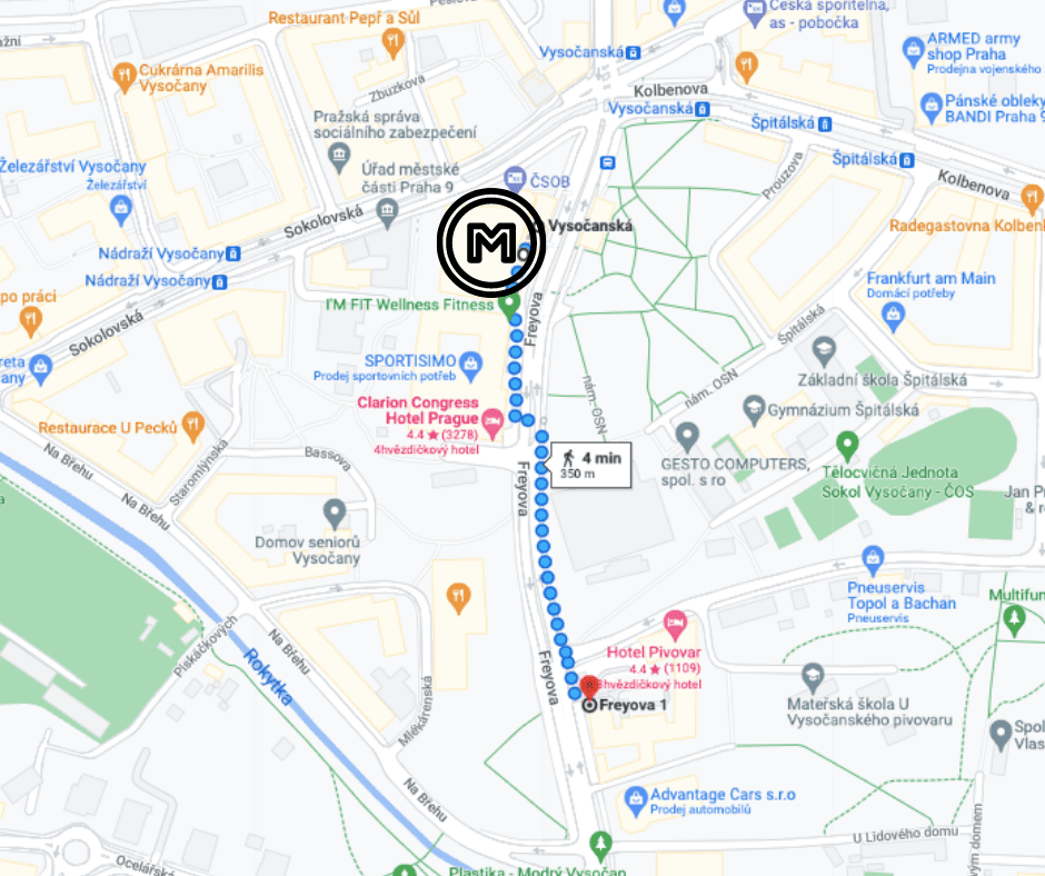 Nejbližší zastávka: Metro (žlutá linka B) – Vysočanská