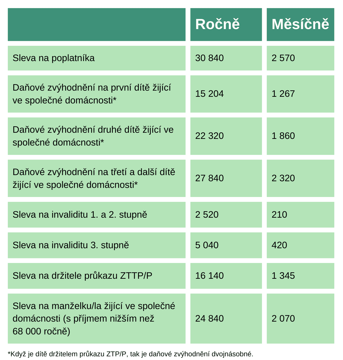 - Má nárok pouze na základní slevu na poplatníka.
