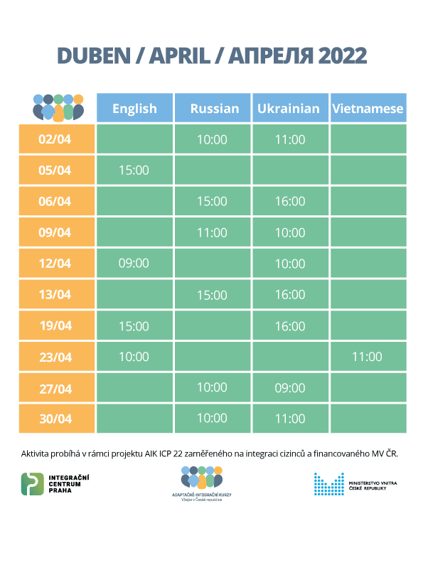 In April, we prepared Adaptation and integration courses for you in English, Russian, Ukrainian and Vietnamese. Don´t hesitate to register! Is your language Arabic, French, Mongolian, Spanish or Serbian? Write to us and we will let you know as soon as we organize a course in your language. Did you know that some foreigners are required to complete the course? Here’s how to proceed: